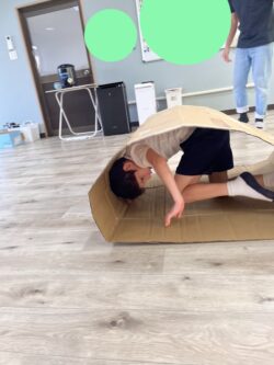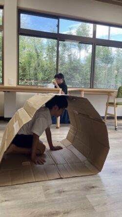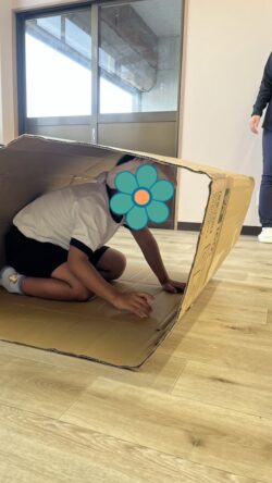 段ボールキャタピラー競争です。
