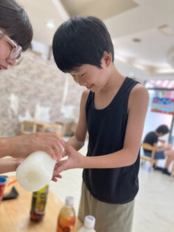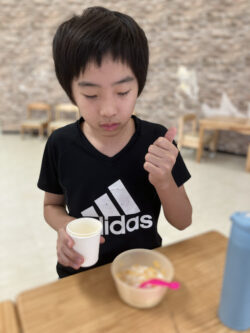 また、まはろに戻った後のおやつはコーンフレークと、事前にそれぞれのお子さんと一緒に買いに行ったジュースです🍹!飲みたかったジュースが飲めてニコニコ!😁