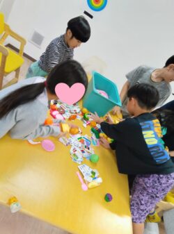 みんながいつも遊んでいるおもちゃをスタッフさんが散らかしてしまいました💦
