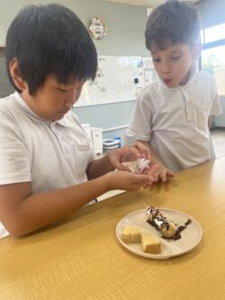 出来上がったマシュマロを友達に見せたり、美味しそうに食べていました🤗
