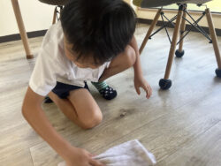 部屋ごとグループごとに分かれて、面談室、大部屋、小部屋、おもちゃ室の掃除を行いました😄
