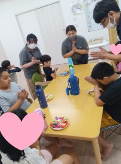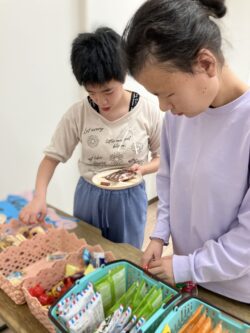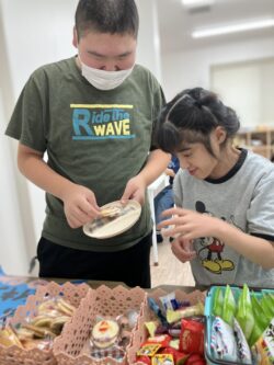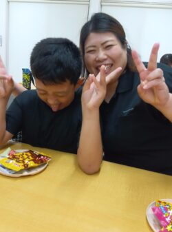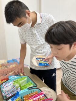 くじ付きおやつの蓋を見て「外れた~!」「当たる人いるの??」と残念そうに言うけれど、おいしいお菓子に笑顔がこぼれちゃってます🌞