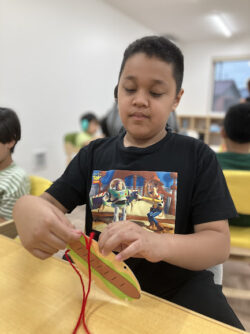 靴の絵にカラフルな毛糸で紐通ししたりしたよ💜