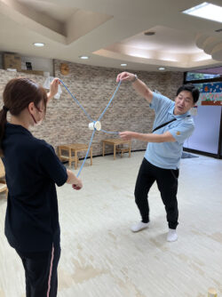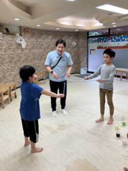 最後までできなくでも、ペアのお友だちと輪ゴムを広げられたことに拍手👏!