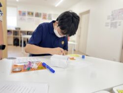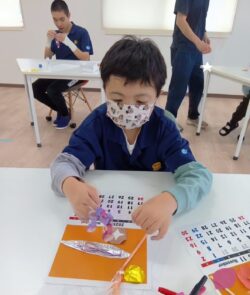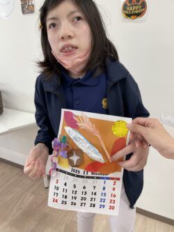 ブドウやサンマ、落ち葉など秋らしい物を沢山1枚の用紙に詰め込んで、