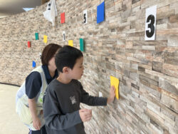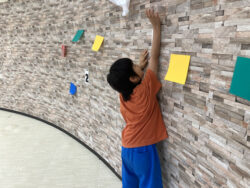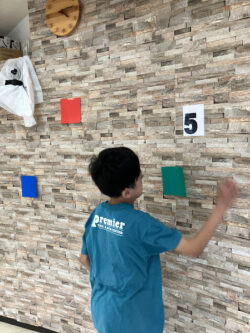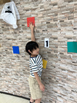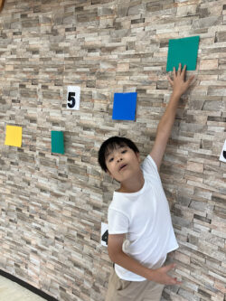 説明が終わり課題スタート!お名前が呼ばれ、指定された色や数字を壁にタッチします!