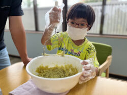 牛乳、砂糖、バターなどを入れて芋を潰します!!!