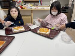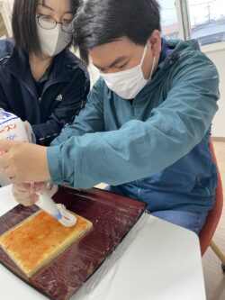 作業の合間に、部屋の飾りつけやおやつのケーキ作りを行いました。
