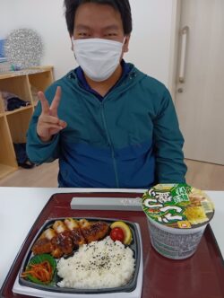 ご利用者様ご自身で購入したお弁当、ワクワク気分でまはろに持ち帰ってランチタイム!