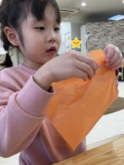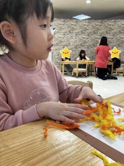 どれどれ?みんな、おはながみをちぎるのが楽しそう…🥰