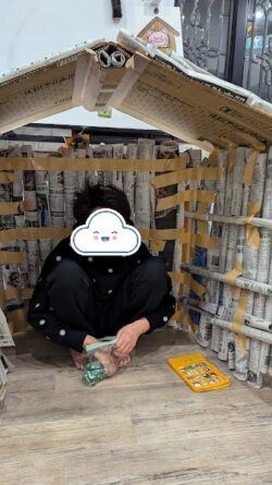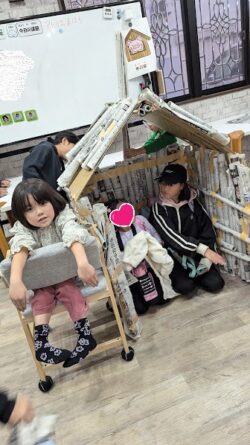 完成した作品の中に入って、楽しそうにしていました(⌒∇⌒)