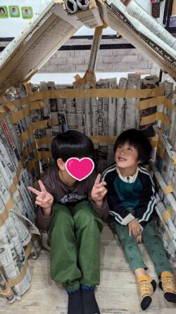 完成した作品の中に入って、楽しそうにしていました(⌒∇⌒)