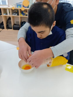 卵を割って!少々卵の黄身が割れたって大丈夫🎶