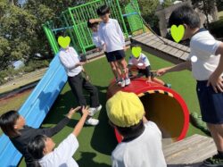遊具を使って鬼から逃げていました👏👏