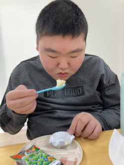 どの種類のじゃがりこを買うかみんなで相談しています…!