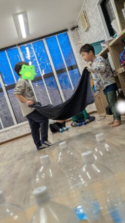 「いくよー!」「せーの!」「もう少し右!」と自然とコミュニケーションが生まれ、回数を重ねるごとに息がぴったり合っていく様子が見られました👍