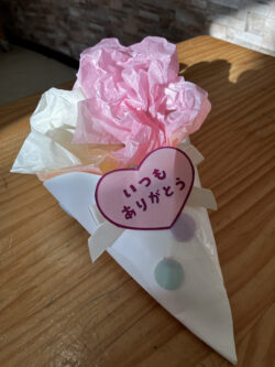 そのために、鮮やかな色のおはながみでブーケを作りました💖