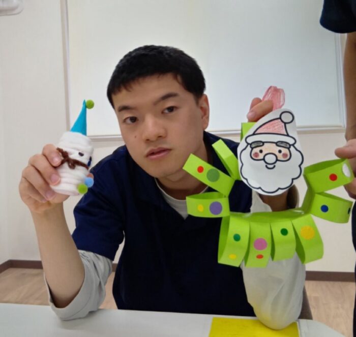 工作はクリスマス🎄の雪だるま⛄にリース作り。