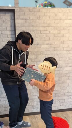 子どもたちはプレゼントボックスを受け取り、
