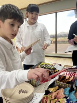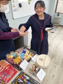 子どもたちにそれぞれ50円分の紙のお金を持たせます💰