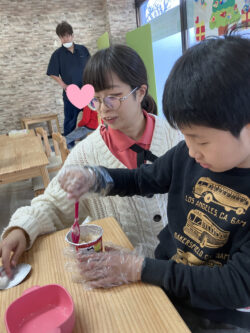 混ぜるとチーズがびよーんとのびて、みんな興味津々です💖
