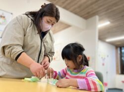 次にボンボンとサンタさんの絵を飾り付け💕🎅みんな真剣ですね🤔🎶