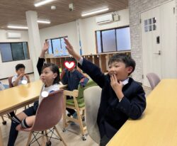 問題を出すと・・・すぐに手を挙げて「はい」と答えていました😊