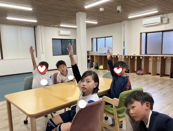 問題を出すと・・・すぐに手を挙げて「はい」と答えていました😊