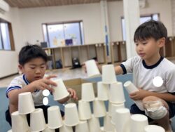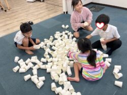 ②紙コップタワーみんなで協力しあい紙コップを積み上げて高いタワーを目指しました🗼