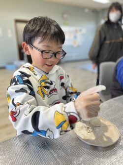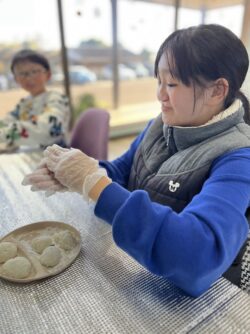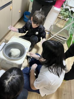 今回は機械でのもちつきだったので蒸す・こねるの過程の見学をしてもらいました🍊