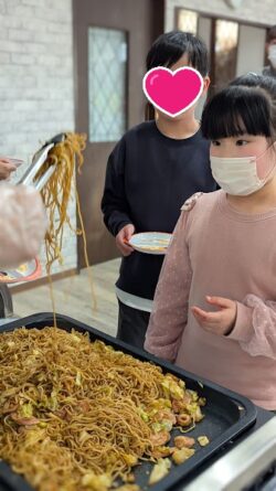 みんなで楽しくおしゃべりをしながら、美味しそうに焼きそばを食べました。