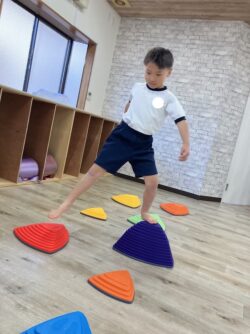 1、ラダー・2、反復横跳び・3、バランスストーン・4、バランスボールの4種目に挑戦しました💦😊