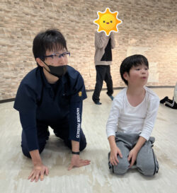 そして後半はもっと足全体を使ったカエル跳びなどにチャレンジしていきます。