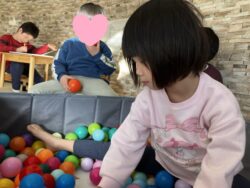 ボールプールではボールの感覚を楽しむ子や冷たさを楽しむ子がいました!