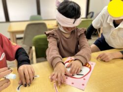 ②だるまの顔(眉・目・ひげ・口)に福笑いをしました。😁