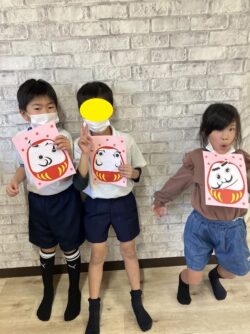 完成しただるまの顔を見て笑いあい楽しそうでした。