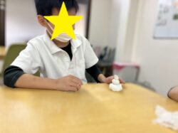 ③粘土で鏡もちを作りました。