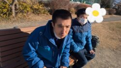 散歩へ出かけたグループは寒い風が吹く中だったので