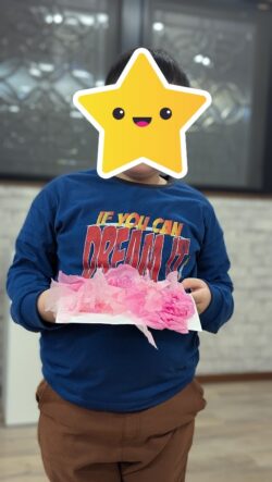 花びらづくりでは、折る・ちぎる・丸めるなどの工程を取り入れ、一人ひとりのペースで取り組んでいます。
