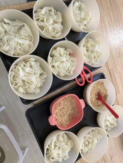 みんなできしめんを切り、きなことお砂糖をまぶしていきます…💞