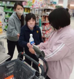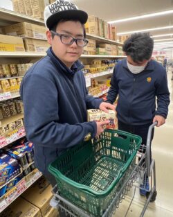 スーパーではいろいろな食材を協力して購入。