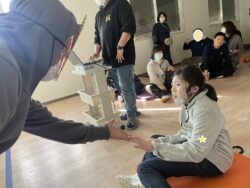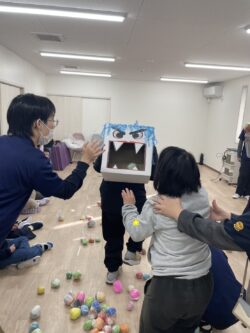 最後に2チームに分かれ、赤鬼、青鬼の背中に向けてボール入れのレクリエーション🌟