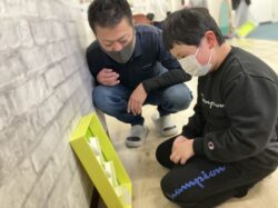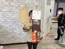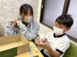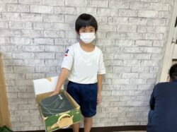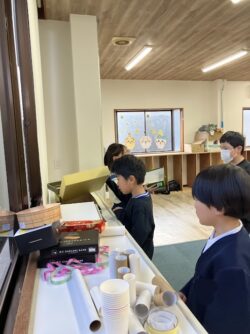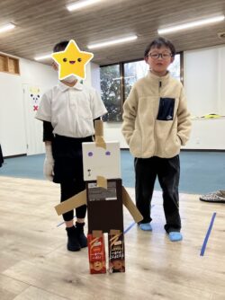 段ボールや、お菓子の箱、トイレットペーパーの芯などを自由に使い、好きな物を製作しました!