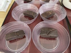 今回のメニューは「ウォーターチョコムース」と「お豆腐ガトーショコラ」
