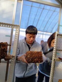 それとは別で屋外作業としてビニールハウス内のしいたけの菌床の