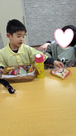 その後は、おやつを配って、いただきますの号令を😊