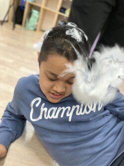 綿を使っていっぱい遊びました