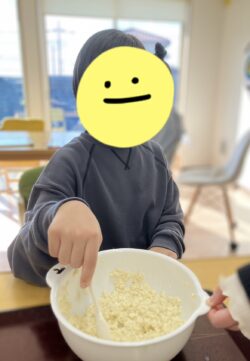 みんなでお話しながら固いビスケットを上手に砕けました🤗