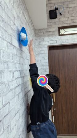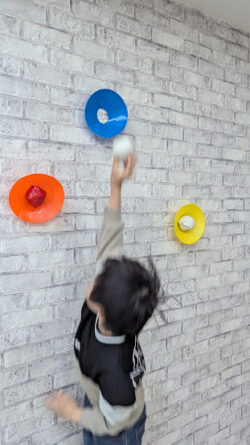 高い位置に設置されたボールを頑張ってゲットしまう