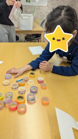 配置を考えながら貼ることで、「どうしたらかわいくなるかな?」「バランスはどうかな?」と自然に工夫する様子も✨